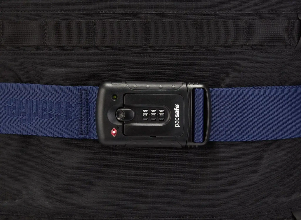 - Pacsafe Strapsafe 100 Luggage Strap — «анти-вор» ремень с трехциферным кодом и технологией Baggage Constrictor™, которая делает его «самозатягивающимся» вокруг чемодана. После защелки замка ремень фиксируется и не ослабляется, даже если чемодан немного сдавливается или его трясет при транспортировке.