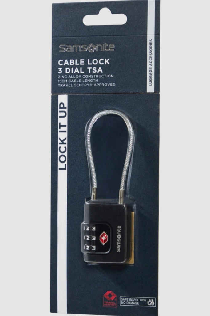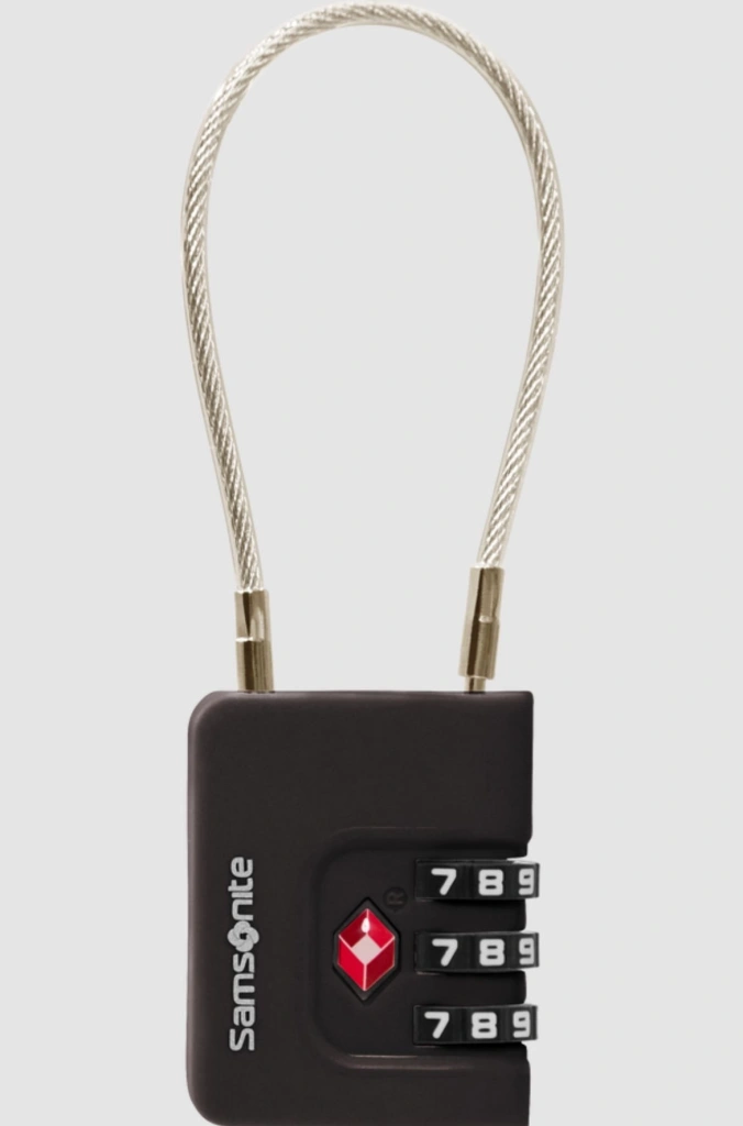 - Samsonite TA Revolution Cablelock 3‑Dial TSA. Замок с прочным металлическим жгутом и комбинированным кодом одобрен Travel Sentry (стандарт безопасности, принятый на территории США и Канады).