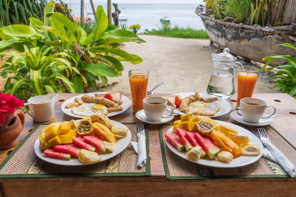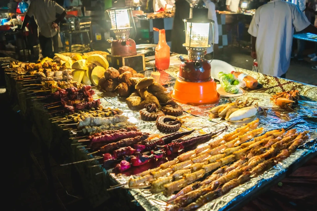 Самый аутентичный способ познакомиться с островом – отправиться на вечерний рынок или в локальные заведения, где едят местные. Например, ночной рынок Фородхани в Стоун Тауне: здесь можно попробовать знаменитую занзибарскую пиццу всего за $2–3, шашлыки из осьминога за $4–6, а также традиционный местный суп урохо за $2.