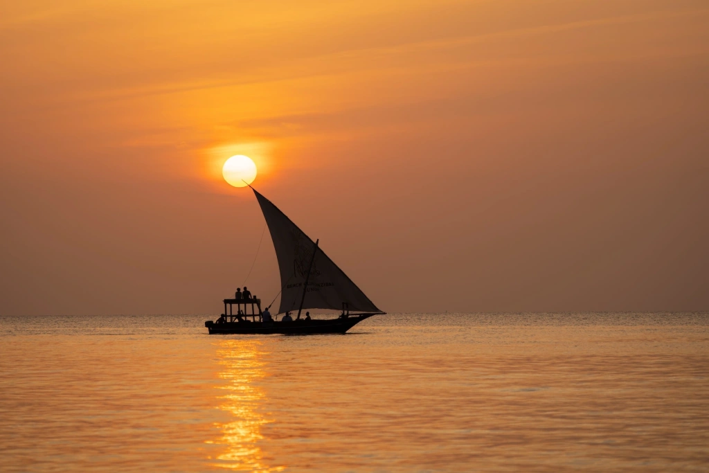 Доу – это традиционная деревянная лодка с треугольным парусом. На прогулку с путешественниками она обычно выходит из Нунгви, Кендвы или прямо из Стоун Тауна, за час-полтора до захода солнца. Вы просто садитесь на мягкие подушки, вам подают прохладные напитки, фрукты и легкие закуски, и доу медленно плывет вдоль берега. Прогулка длится около 2 часов и заканчивается уже в сумерках, когда лодка возвращается к берегу.