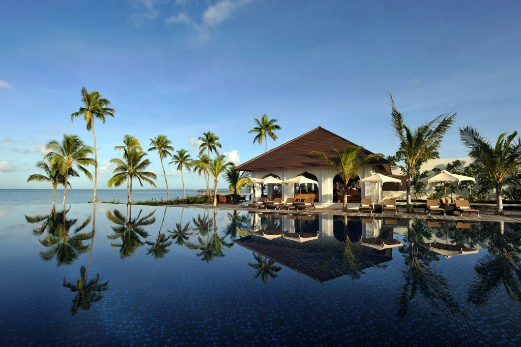 - Zuri zanzibar. Пятизвездочный курорт в получасе езды от Стоун Тауна, окруженный тропической зеленью и с выходом к собственному 300-метровому пляжу. Здесь больше 50 бунгало и вилл – от однокомнатных до семейных. На территории есть 3 ресторана с африканской, европейской и арабской кухнями, 4 бара, большой бассейн с подогревом. Для гостей проводят занятия йогой, есть отдельные wellness-программы. Стоимость за ночь в низкий сезон – от $1000, в самый разгар туристического сезона – от $1700.