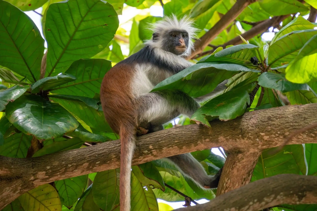 Занзибарский красный колобус (Piliocolobus kirkii) — главный символ леса Джозани на Занзибаре. Это подвид обитает только на острове Унгуджа. Его легко узнать по рыжеватой шерсти на спине и хвосте, выразительной темной мордочке и длинному хвосту. Популяция вида, по разным оценкам, составляет около 5–6 тысяч особей, и значительная их часть живет именно в Джозани.