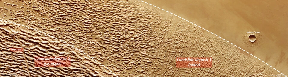 Одна из особенностей горы Олимп – крутые, местами почти отвесные склоны по краям высотой 6-7 км. Ученые долго пытались выяснить их природу. Ответ был найден только в 2023 году, когда орбитальный аппарат Mars Express Европейского космического агентства сфотографировал изрезанный складками участок, окружающий северную часть потухшего вулкана.