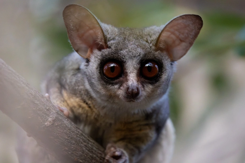 Также известные как бушбеби, галаго – небольшие приматы весом до 100 граммов. Предпочитают лесистую местность, где много ветвей и густой подлесок — там они скрываются от хищников. Благодаря удлиненными задним лапам и длинному хвосту они легко прыгают между деревьями на расстояние до 2–3 метров, менять направление в воздухе и точно приземляться на тонкие ветки. Большие глаза и большие уши помогают им ориентироваться в полумраке.