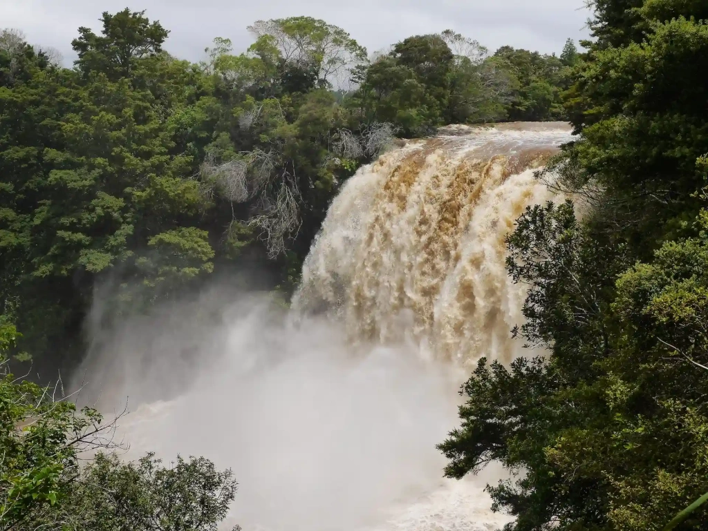 Во Даутфул-Саунд на юго-западе Новой Зеландии есть водопад Браун. Он находится на территории Национального парка Фьордленд и берет начало из небольшого горного озера Браун на высоте около 836 метров над уровнем моря. Когда озеро переполняется после обильных дождей, вода переливается через край и начинает стекать вниз по скалистым склонам, образуя длинный многоступенчатый поток.